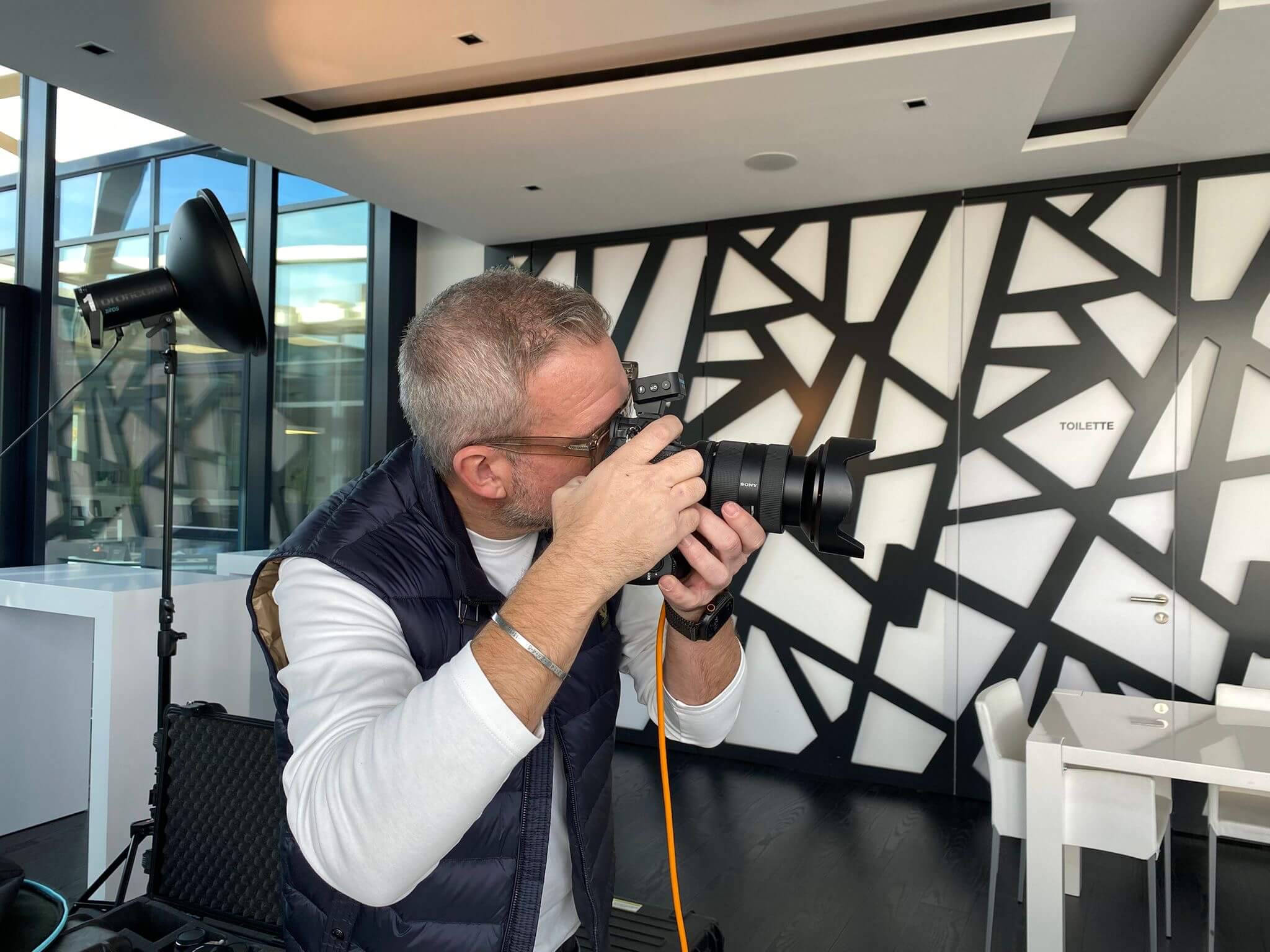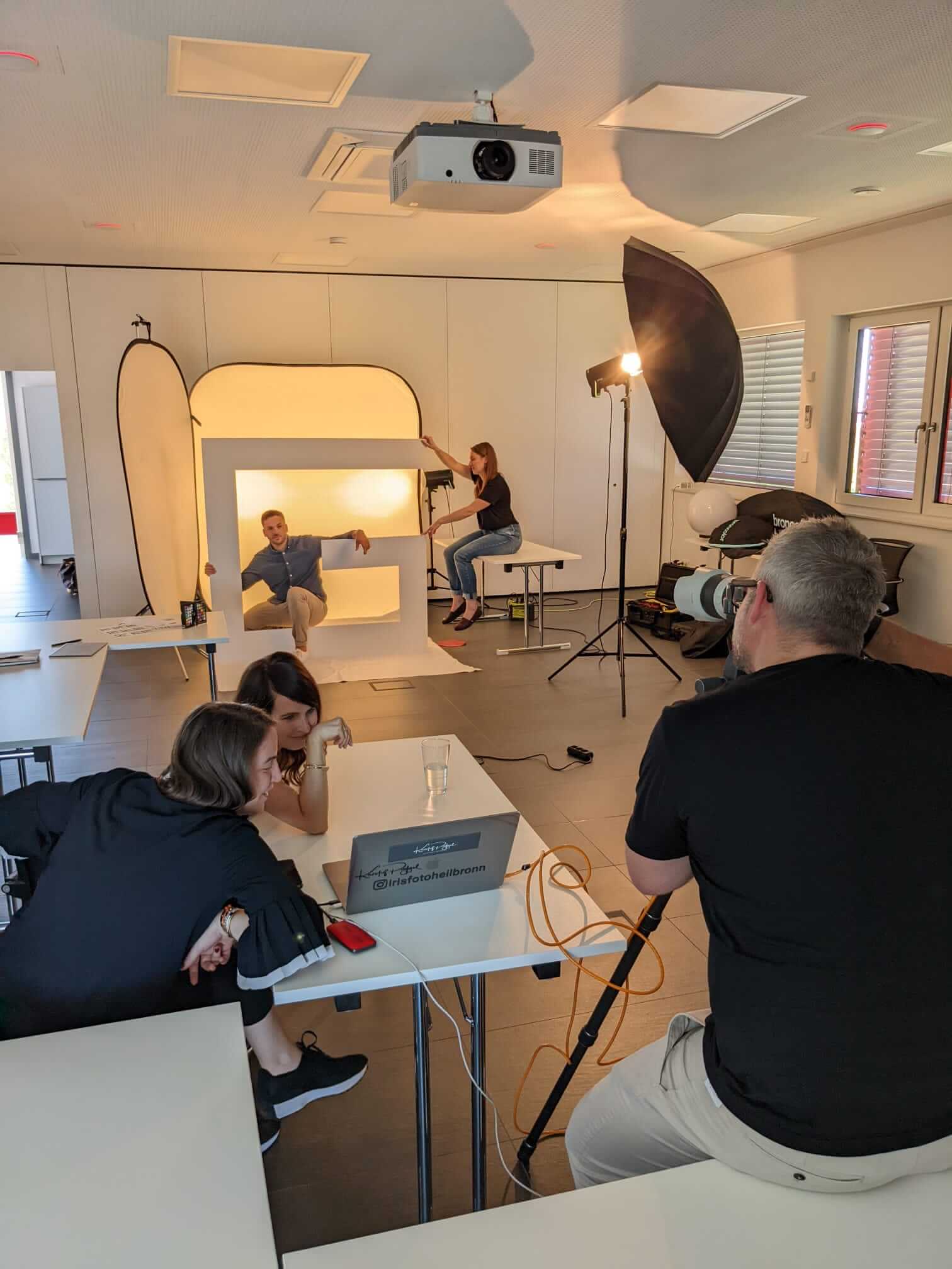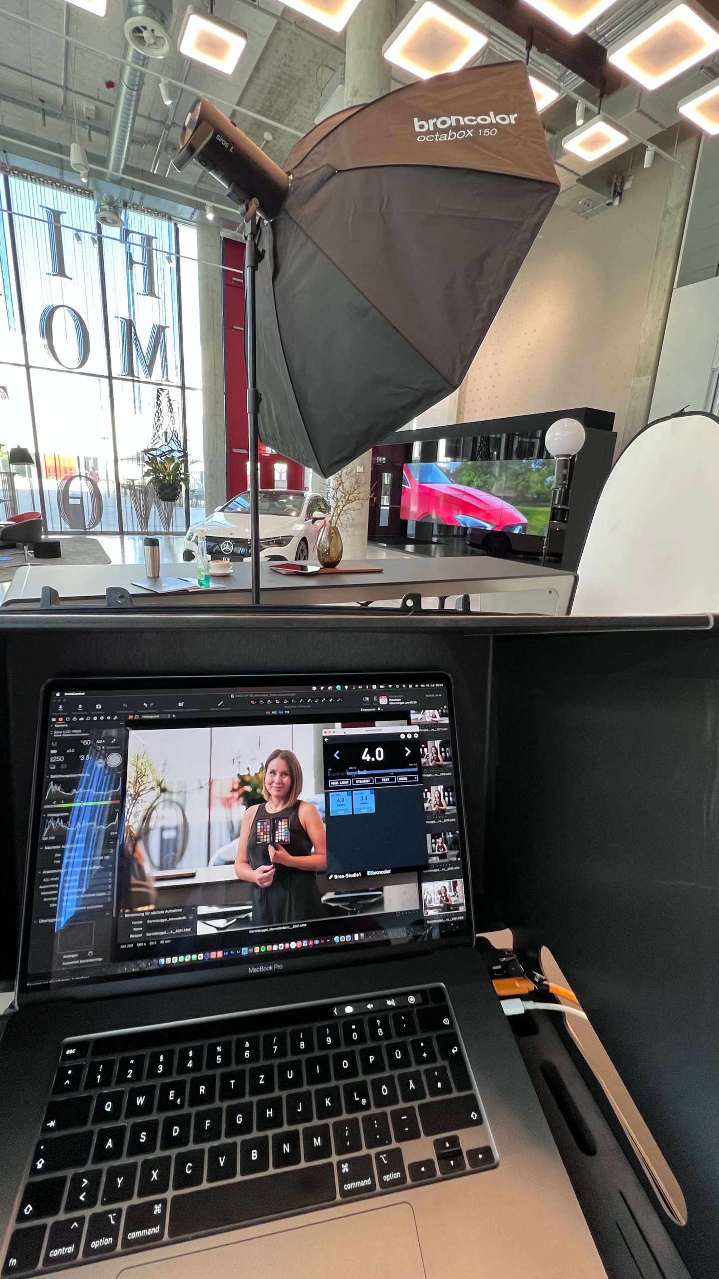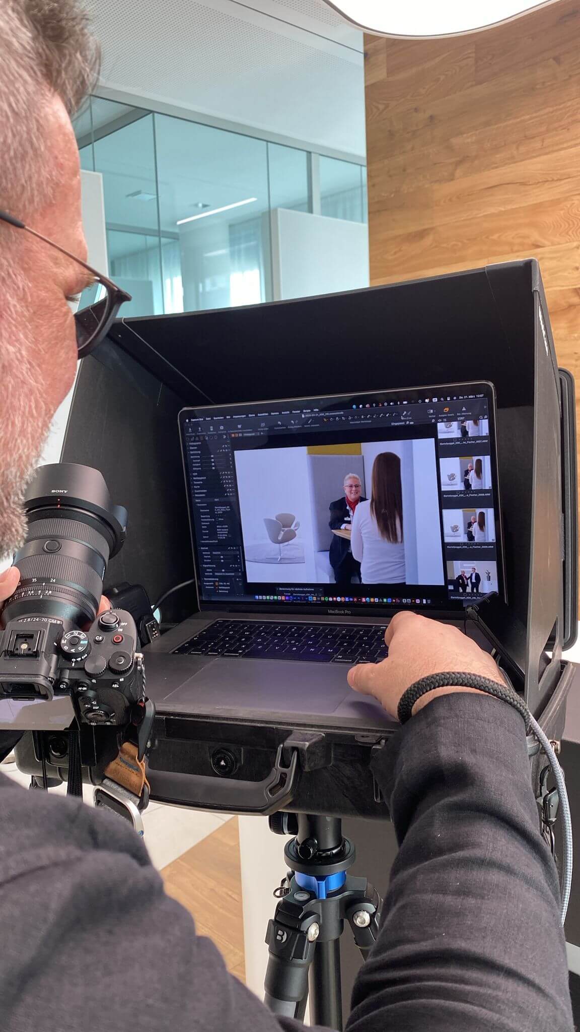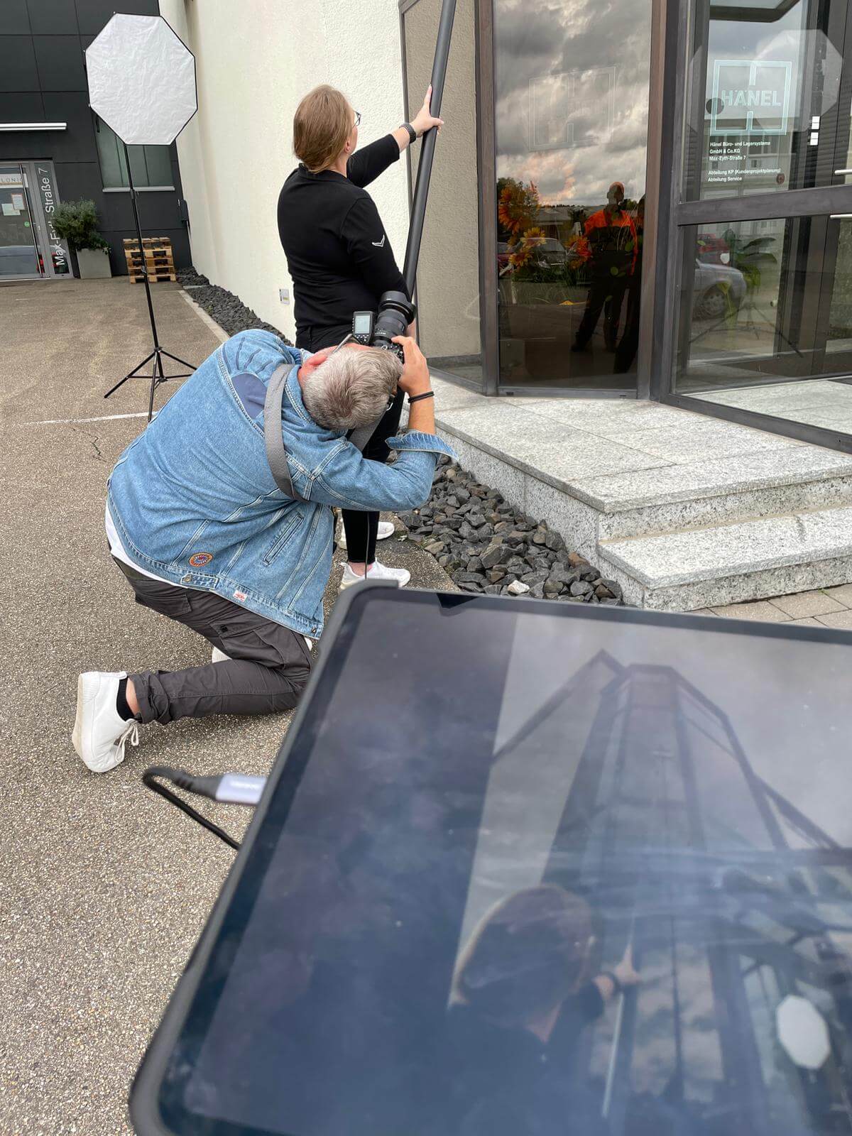 Die Schulterblicke zeigen, was sonst verborgen bleibt: Lichtführung, Setaufbau und der Anspruch, Business-, Industrie- und Personal-Branding-Fotografie mit Ruhe und technischer Qualität umzusetzen.